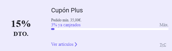 Además, ya puedes aprovechar un cupón Plus del 15% en pedidos superiores a 35€.