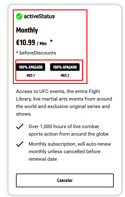 La suscripción es mensual y se renueva automáticamente, aunque puedes cancelarla antes de la fecha de renovación si no quieres continuar.