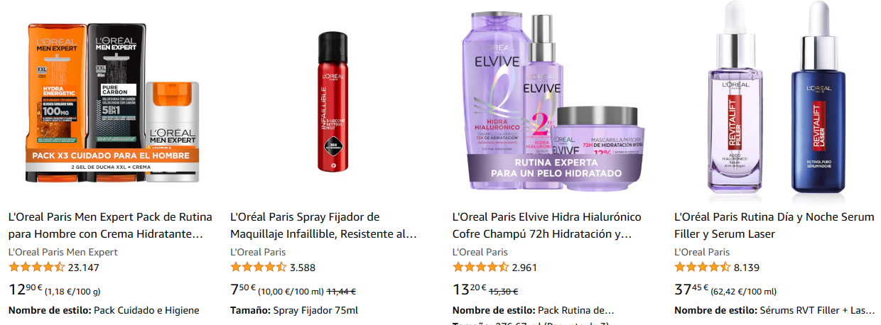 Desde el 24 hasta el 30 de septiembre de 2025, aprovecha la oferta de "Compra 3 por el precio de 2" en Amazon.es. Por ejemplo, puedes comprar 3 mascarillas Elvive de L'Oréal Paris por el precio de 2 y ahorrar. El descuento se aplicará automáticamente al finalizar la compra.