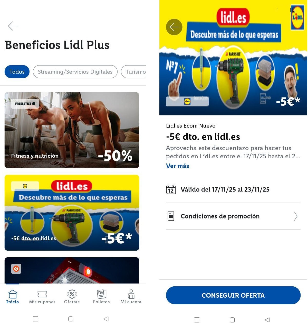 Del 17 al 23 de noviembre de 2025 , LIDL lanza una promoción especial con la que podrás ahorrar 5€ en cualquier pedido realizado en Lidl.es , sin importe mínimo de compra . Una ocasión perfecta para adelantar compras, rellenar tu despensa, reponer artículos del hogar o simplemente aprovechar los precios competitivos de LIDL desde la comodidad de tu casa.