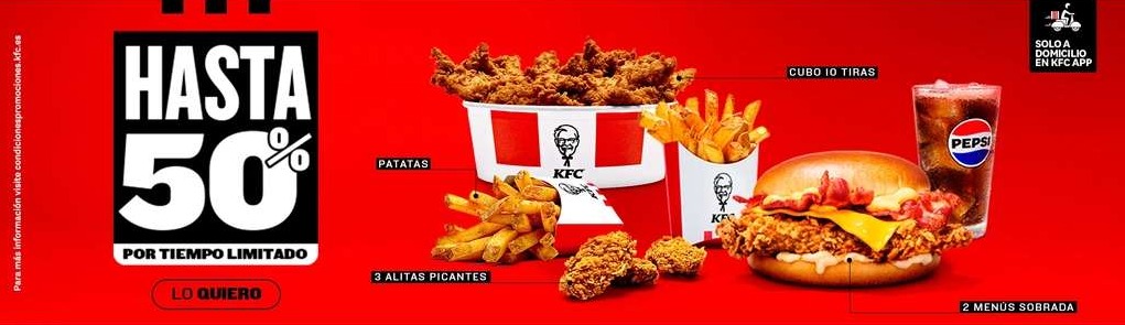 Promoción valida del 20/10/2025 al 26/10/2025. Válido solo a domicilio en KFC APP. Consultar disponibilidad por restaurante.