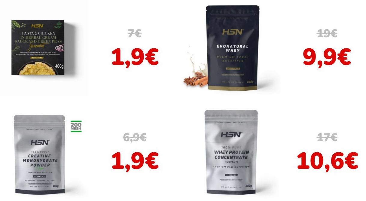 Hasta el 9 de octubre, HSN lanza su promoción Flash con descuentos de hasta el 70% en productos seleccionados. Incluye proteínas, creatina, platos preparados y más, a precios muy competitivos. Además, los pedidos de 69€ o más incluyen un regalo a elegir entre un shaker de 400 ml o un pastillero semanal. Envío gratuito desde 29,99€.