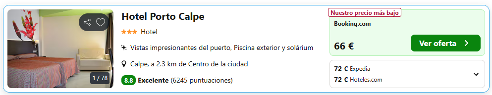 Muy buen precio para unas vacaciones en Calpe con hotel a pie de playa, con vistas al Peñón de Ifach, piscina exterior y restaurante. Habitaciones con aire acondicionado, TV y baño privado. Disfruta de la Costa Blanca desde 66€ noche, explora el casco antiguo, sube al Peñón o relájate en la playa.