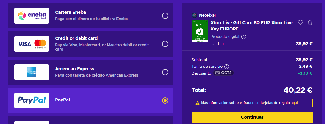 Muy buen precio desde Eneba para esta tarjeta con 50€ de saldo para Xbox. Con este saldo puedes comprar cualquier cosa desde la store de Xbox, desde videojuegos a todo tipo de suscripciones.