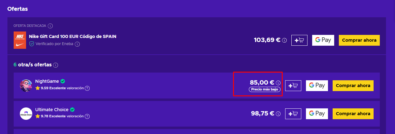 Buen descuento en esta tarjeta regalo Nike de 100€ , que puedes conseguir por solo 90 ,7€ en Eneba. Válida para compras en la tienda online oficial de Nike España. Una forma segura y económica de ahorrar en zapatillas, ropa deportiva y accesorios de la marca.