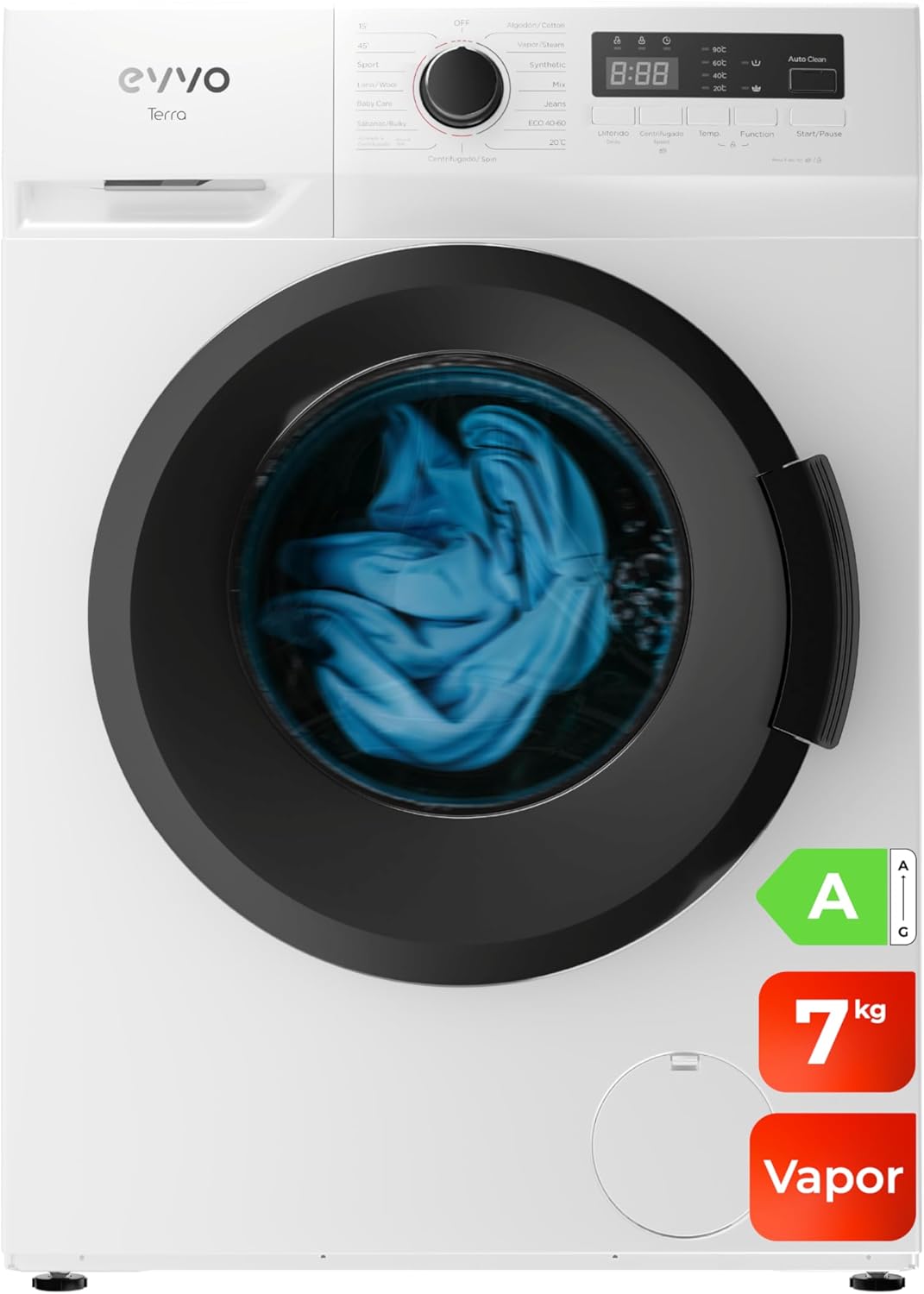 Precio chollo para esta lavadora EVVO Terra de 7 kg. Con clase energética A y motor Inverter. Incorpora 15 programas adaptados a todo tipo de tejidos, incluyendo un ciclo rápido de 15 minutos y función de vapor para eliminar arrugas y alérgenos. Su velocidad de centrifugado alcanza las 1400 rpm, garantizando un secado más eficaz. Además, dispone de inicio diferido para mayor comodidad y una práctica carga frontal. Vendido y enviado por Amazon.