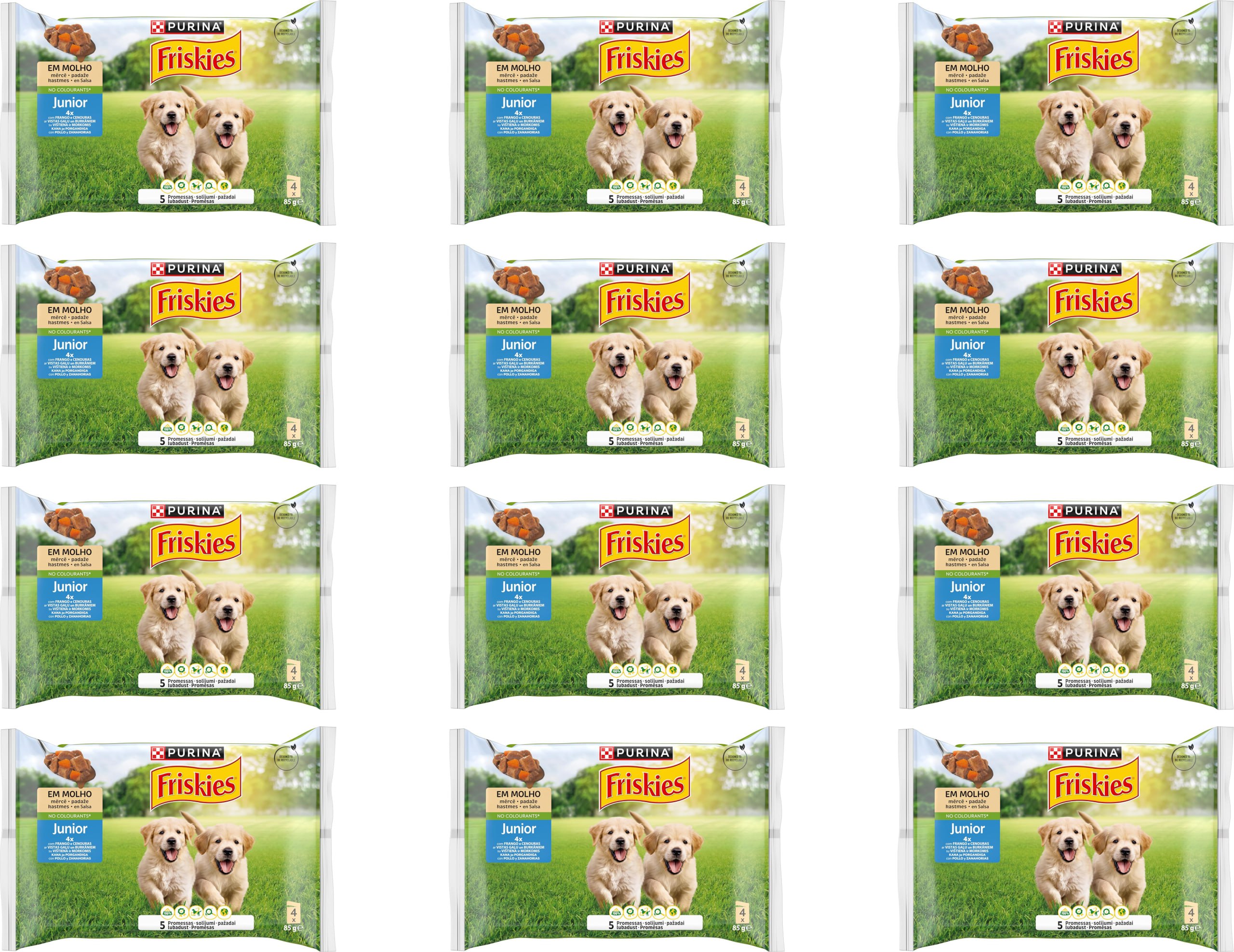 Bajada de precio para este paquete de 12 bolsas cada una con con cuatro individuales de Purina Friskies Comida Húmeda en formato de 85gr cada una. Es un alimento completo y equilibrado, especialmente formulado para cachorros. Este delicioso paté en salsa, con pollo y zanahoria, proporciona la nutrición esencial que tu cachorro necesita para crecer sano y fuerte. Su textura suave facilita la ingesta. En TiendaAnimal cada paquete individual cuesta 2,69€. Vendido y enviado por Amazon.