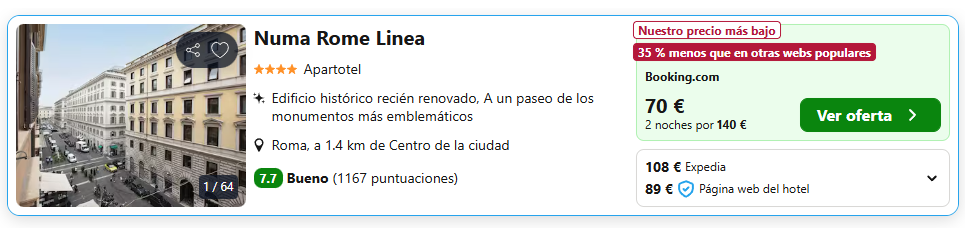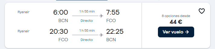 Muy buen precio para esta escapada a Roma, con vuelos directos y dos noches en un aparthotel céntrico desde solo 107€ por persona. Incluye vuelos ida y vuelta desde 39€ y estancia en un alojamiento bien valorado cerca de Termini. Una opción económica para disfrutar de la ciudad eterna con total comodidad.