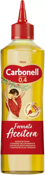 127 -29% Señor RecioHace 7 meses 460 ml Aceite Carbonell Oliva 0,4 Formato Aceitera 2,5€ 3,5€ Envio GRATIS Buen precio para este aceite de Oliva Carbonell 0,4 en formato aceitera de 460 ml con tapón dosificador. Conserva el sabor origina ... Leer mas