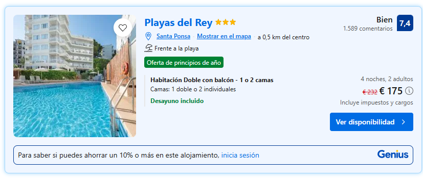 Escapada perfecta a Mallorca con 4 noches en hotel con desayunos incluidos y vistas al mar. Disfruta de todas las comodidades, relájate en la playa y explora la isla. Vuelo incluido y todo por solo 115€ por persona. Ideal para una aventura inolvidable y totalmente económica.