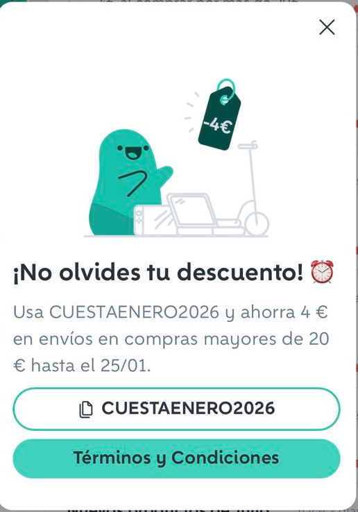 Consigue 4€ de rebaja en artículos de más de 20€ solo aplicando este cupón descuento. Válido hasta el 25 de enero . Ideal para ahorrar en tus compras.