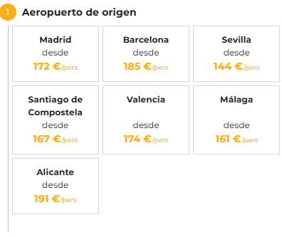 - ✈️SALIDAS DESDE 7 CIUDADES DISTINTAS🛫Vuelos directos ida y vuelta desde la ciudad elegida. Podrás viajar desde Madrid, Barcelona,Sevilla, Santiago de Co,mpostela, Valencia, Málaga o Alicante🌛 Podrás viajar 2, 3, 5 o 7 noches y 📅habrá salidas de noviembre de 2025 a Abril de 2026 bajo disponibilidad.