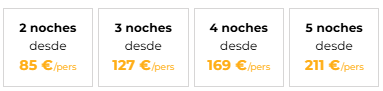 - 🌛Estancia mínima de 2 noches. Posibilidad de viajar hasta 5 noches.