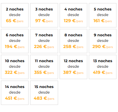 - 2 noches : Resto de fechas.