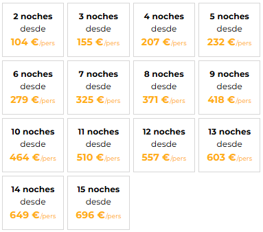 - 3 noches: Del 20 al 30 de junio y del 08 al 30 de septiembre