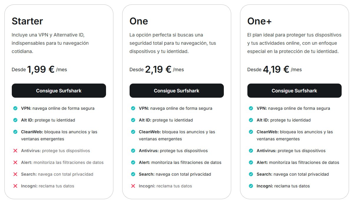 - 2 años de suscripción a Surfshark One: 2,99€/mes + 3 meses GRATIS