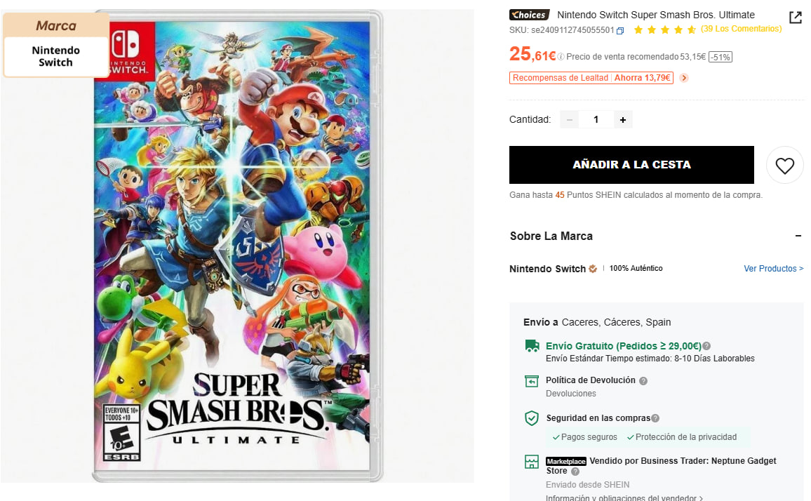 Vuelve en stock este juegazo para Nintendo Switch, el Super Smash Bros. Ultimate, un juego donde el objetivo es derrotar a tus oponentes lanzándolos fuera del escenario, y en el que el último jugador que quede en el mismo, gana. Ideal como regalo. Envío GRATIS.