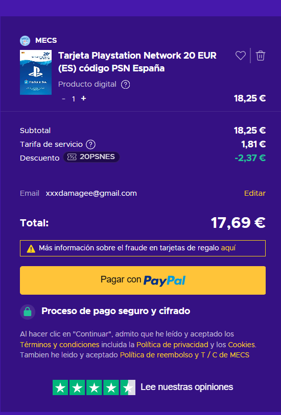 - • Compra un código de tarjeta PlayStation Network 20 Eur (ES);