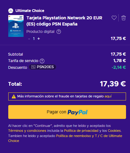 • • Compra un código de tarjeta PlayStation Network 20 Eur (ES);