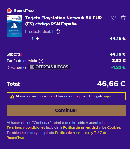 Buen precio para esta tarjeta de 50€ de saldo válido para la tienda de PlayStation online. Una forma de ahorrarnos dinero en nuestras compras de juegos online. Se trata de un código de descarga PSN digital con 12 dígitos que, al ser canjeado, permite descargar el contenido para esas plataformas.