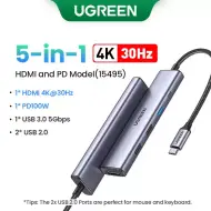 Buen precio para Hub USB-C UGreen, un adaptador 5 en 1 con salidas como USB-C Power Delivery 100W, soporta doble pantalla 4K@60Hz, ... Leer mas