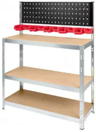 Muy buen precio para esta estantería galvanizada de grandes cargas con panel para herramientas. Muy estable, con sistema práctico ... Leer mas