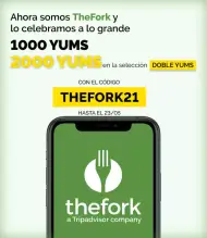Haz tu reserva con TheFork antes El Tenedor e introduce el código THEFORK21para conseguir 1000 Yums (equivalente a 10€). Además, s ... Leer mas