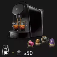 Exclusiva cafetera de cápsulas Philips L'Or Barista. Con esta cafetera podrás preparar 2 cafés a la vez o 1 café doble en una taza ... Leer mas